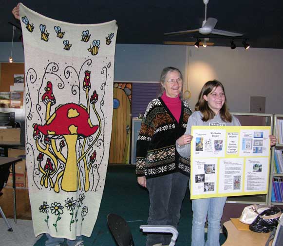 Sharon's belief in this statement and her love of the knitting craft led her to work with various educational programs for our youth though out her career. This involved helping to set up knitting machine programs ranging from career days for Grade School students interested in the fashion programs, ROP programs in high school home ec classes, continuation schools, home schooling programs, and adult education at Shasta Community College.
