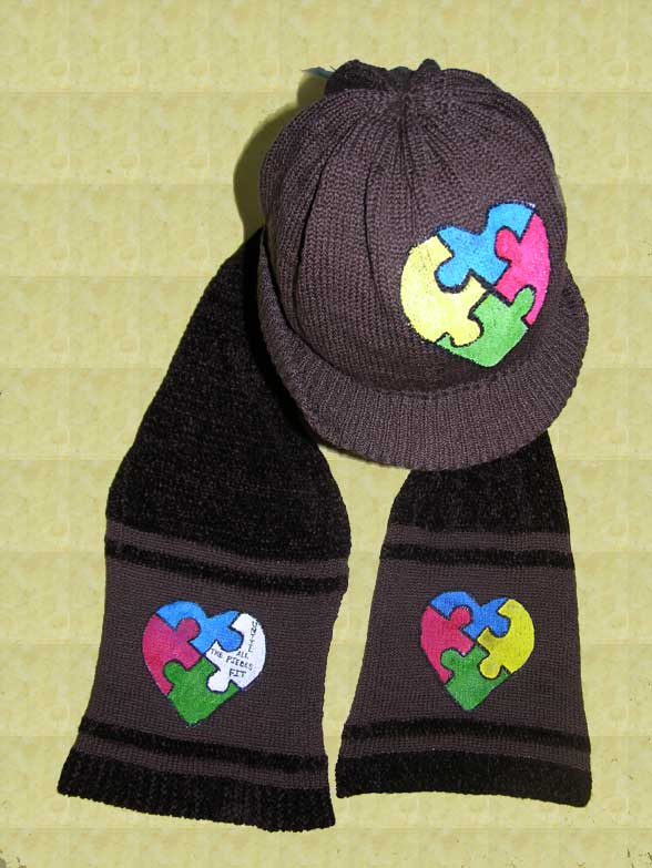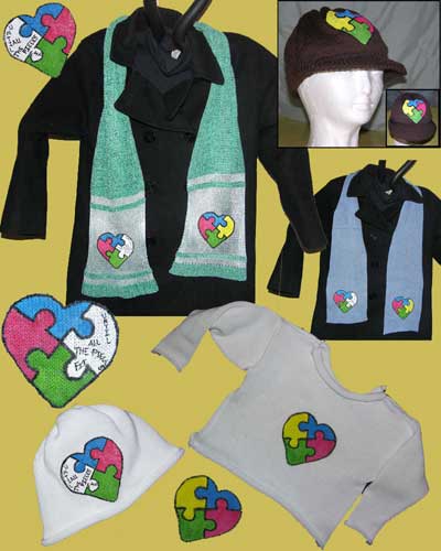 Supporting Early Intervention and Autism Awareness is a focal point for Creating the Hand Painted Autism Heart Puzzle on knitted Items