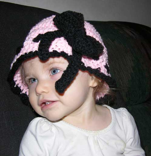 When the girls are sleeping and she gets a chance to watch TV with her husband, her hands are still not idle. Out comes the crochet hook and yarn and another Crochet Critter hat is added to the collection. Some of the hats get an attached crochet scarf which can vary in length according to the size.