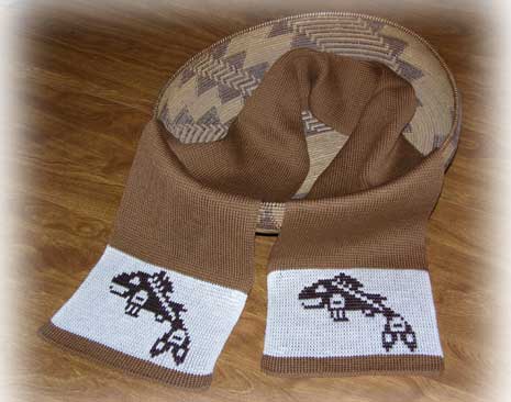 Sharon is a non Native and works with various tribes applying their cultural designs to knitwear products.